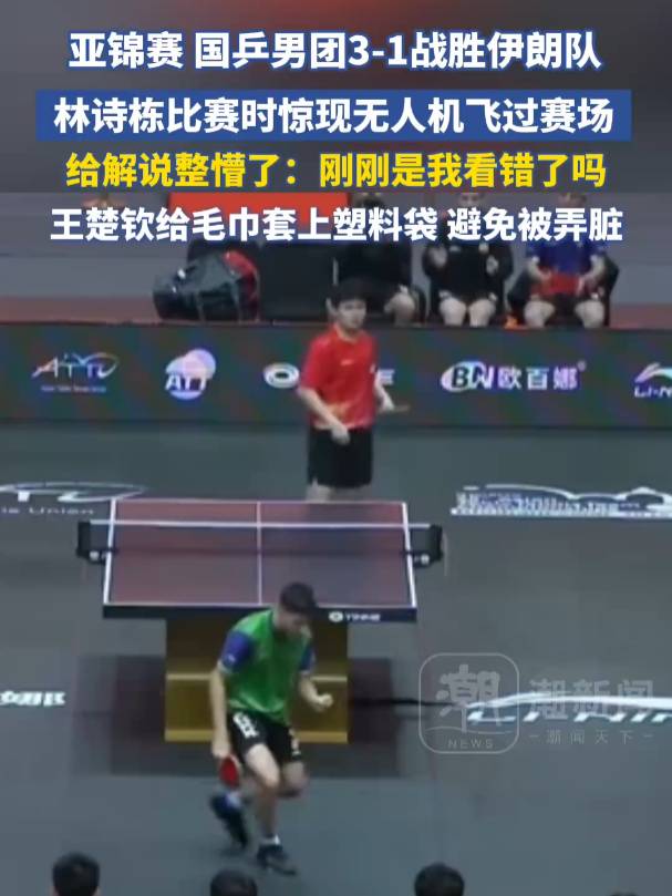 据潮新闻报道,比赛时,一架无人机在直播镜头中飞过球员头顶,给解说员整懵了,“刚刚是我看错了吗”。另外,比赛时王楚钦给擦汗毛巾套了塑料袋,多位球员头顶冰袋降温。