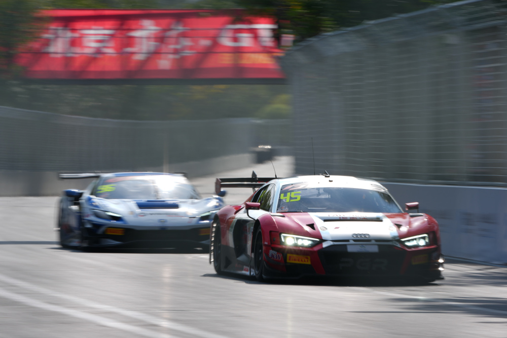 10月18日,一汽奥迪运动亚洲-魅影车队中国车手程丛夫/余快驾驶赛车在亚洲系列赛预排位赛中。新华社记者 郑焕松 摄