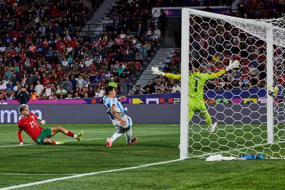 当日,在智利圣地亚哥进行的2025国际足联U20男足世界杯决赛中,摩洛哥队2比0战胜阿根廷队,获得冠军。
