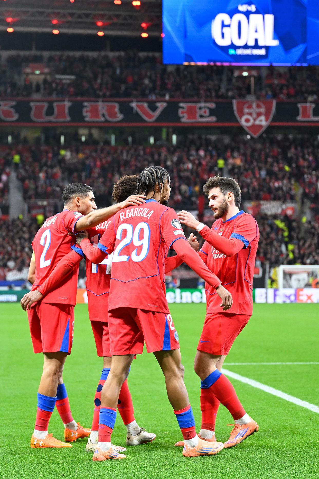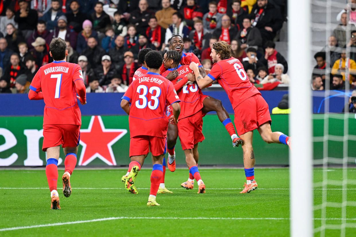 10月21日,巴黎圣日耳曼队球员庆祝得分。新华社发(乌尔里希·胡夫纳格尔摄)