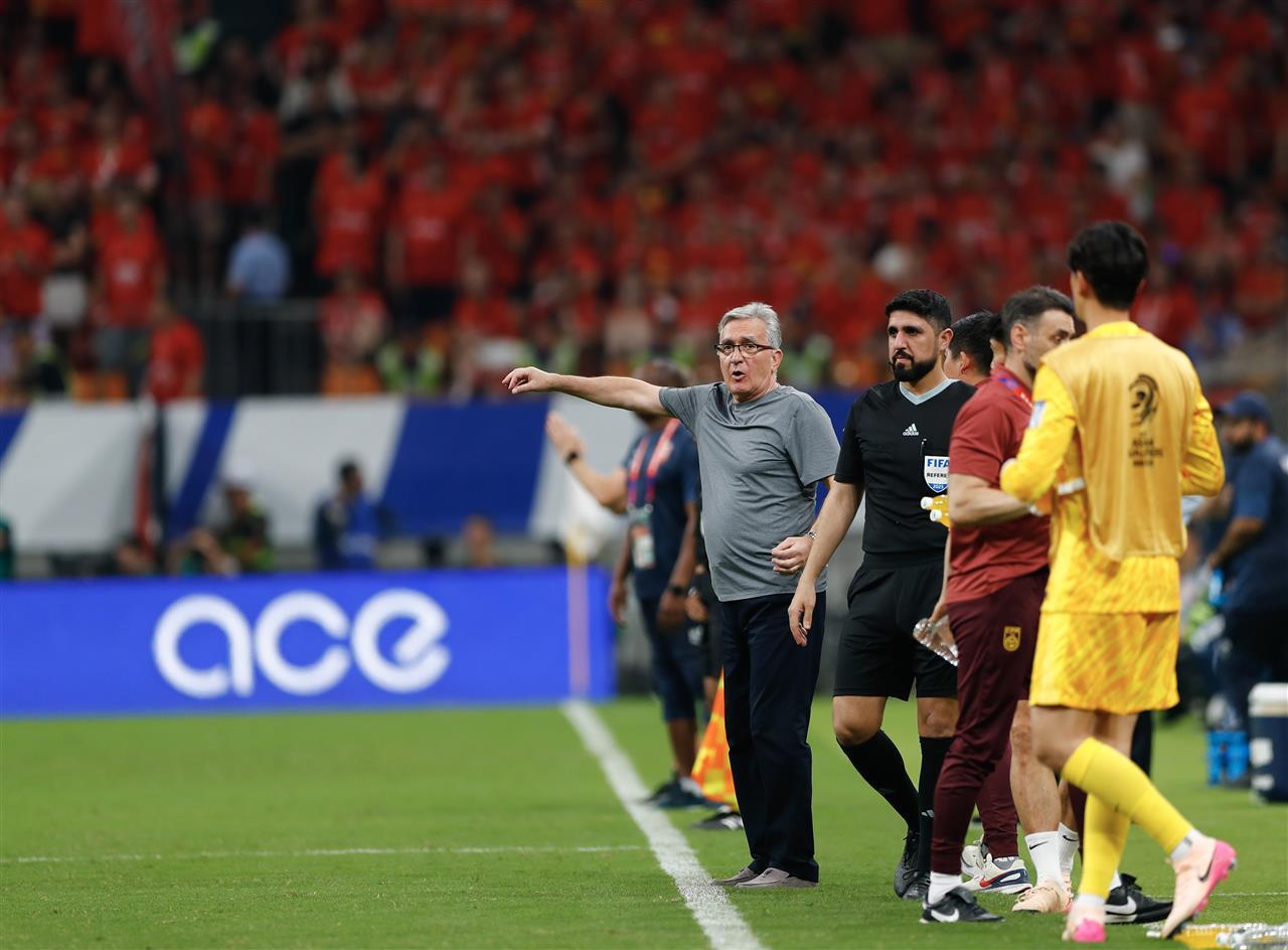 中国队主教练伊万科维奇(左一)在场边指挥(新华社发)