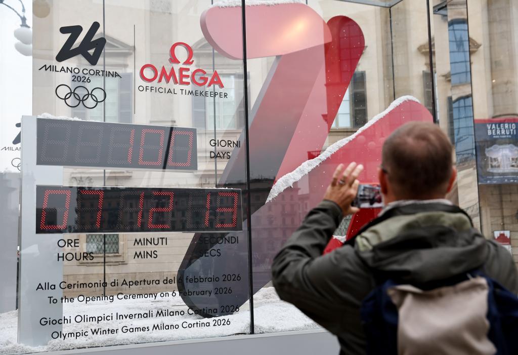10月29日,在意大利米兰,市民拍摄米兰-科尔蒂纳冬奥会倒计时牌。新华社记者 李京 摄