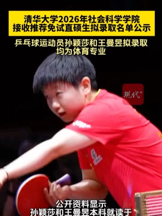 10月30日,清华大学社会科学学院公布2026年接收推荐免试直硕士生拟录取名单,乒乓球运动员孙颖莎、王曼昱拟录取。