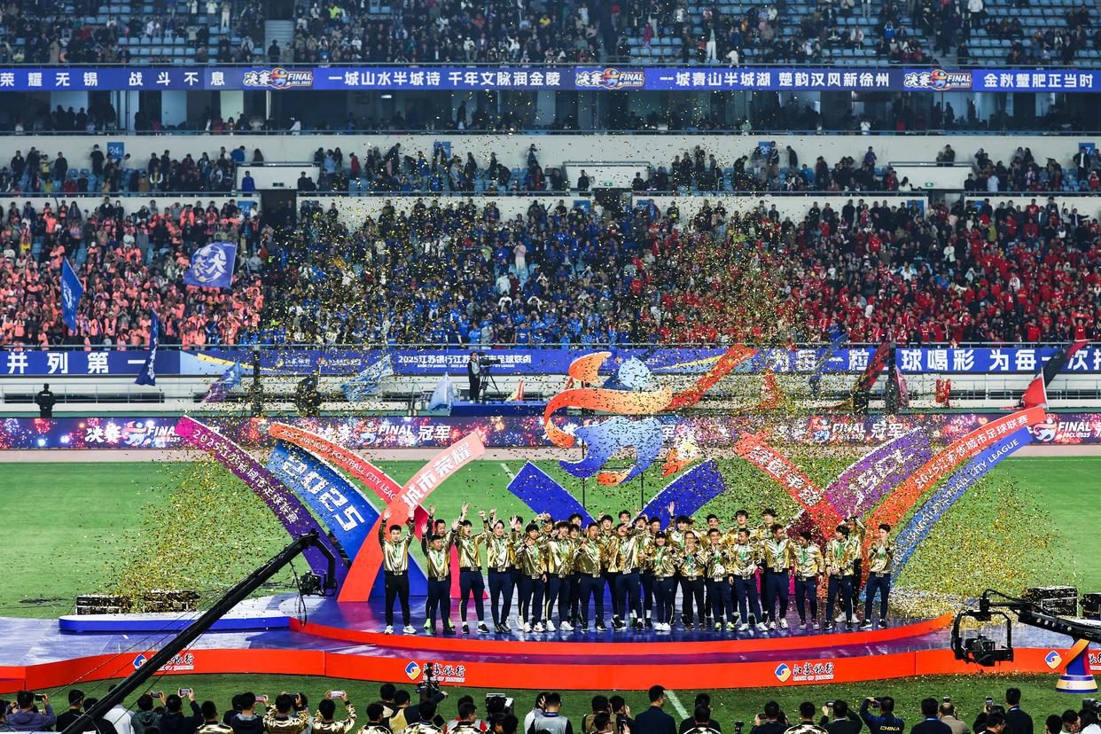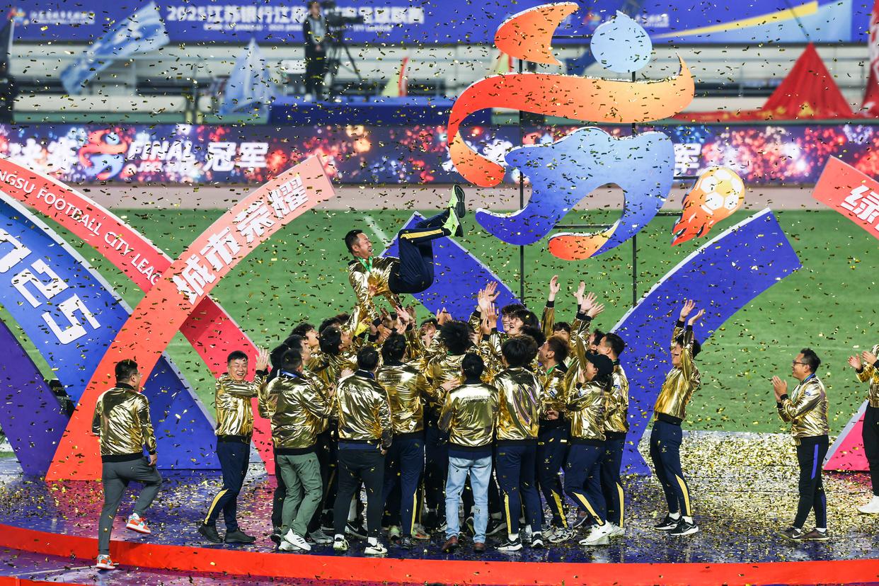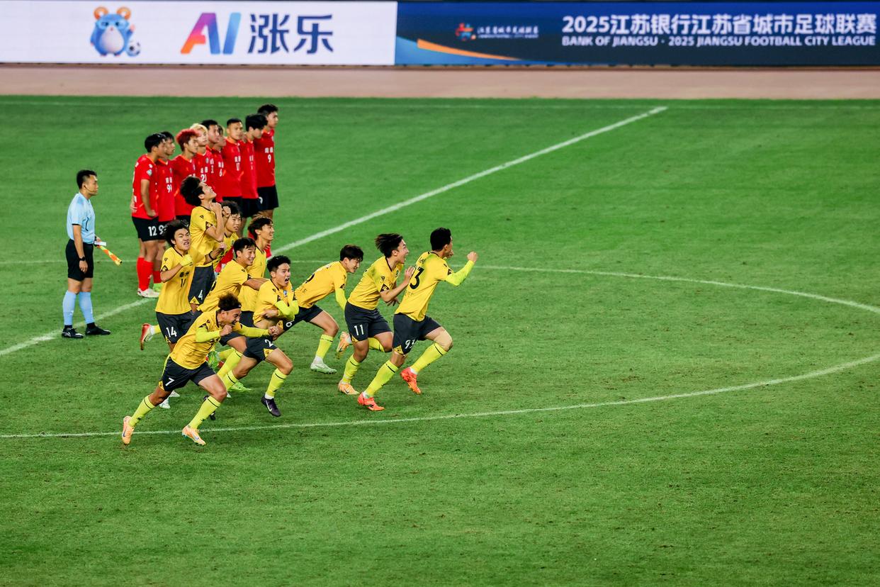 11月1日,在江苏南京举行的2025江苏省城市足球联赛(“苏超”)决赛中,南通队与泰州队在常规时间0比0战平,通过点球大战,泰州队总比分4比3战胜南通队,夺得冠军。