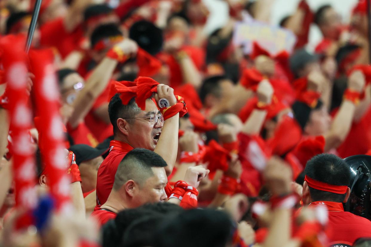 11月1日,南通队球迷在比赛中为球队加油。新华社记者 李博 摄