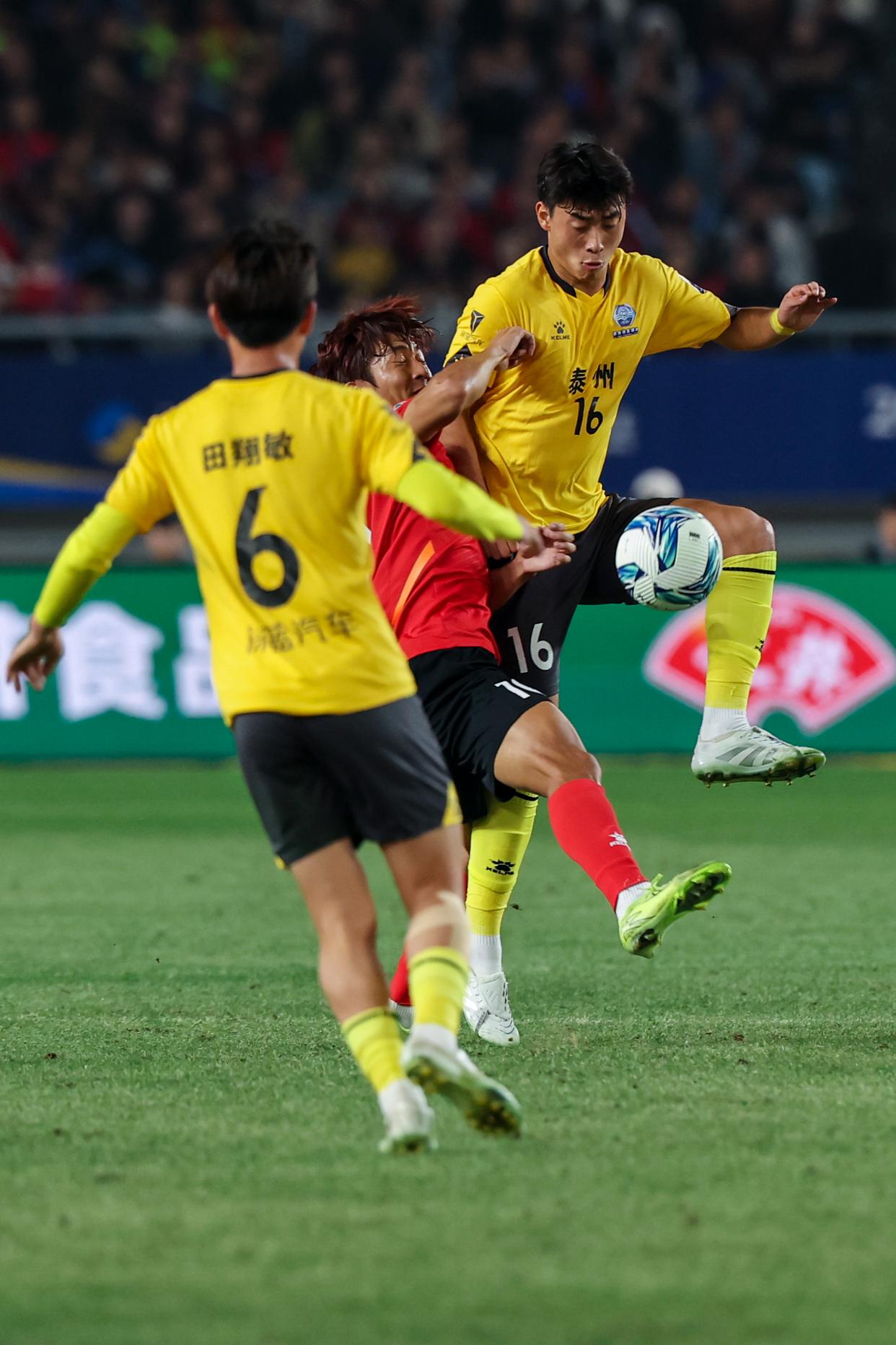 11月1日,泰州队球员武之程(右)在比赛中。新华社记者 李博 摄