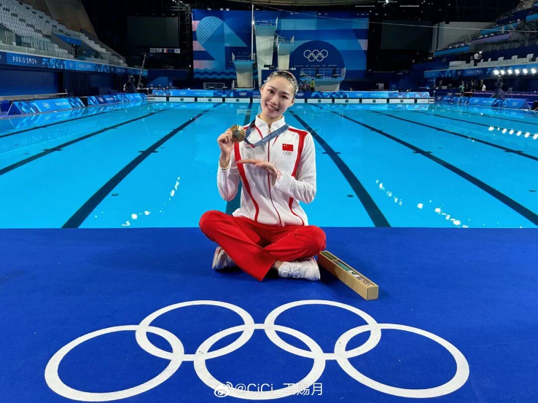 王赐月获得巴黎奥运会花样游泳集体项目金牌。图源:王赐月微博