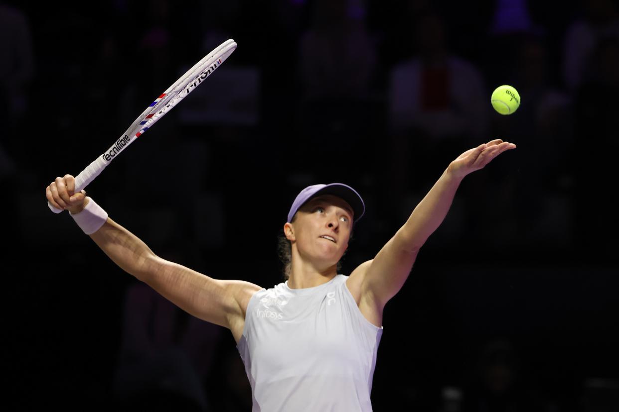 11月3日,斯维亚特克在比赛中发球。新华社记者 罗晨 摄