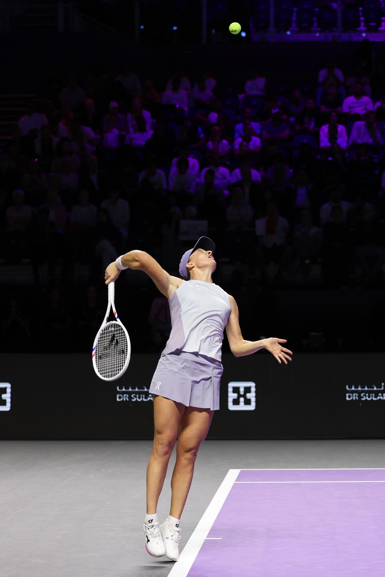 在沙特阿拉伯利雅得进行的WTA年终总决赛小组赛中,哈萨克斯坦选手莱巴金娜2比1战胜波兰选手斯维亚特克。