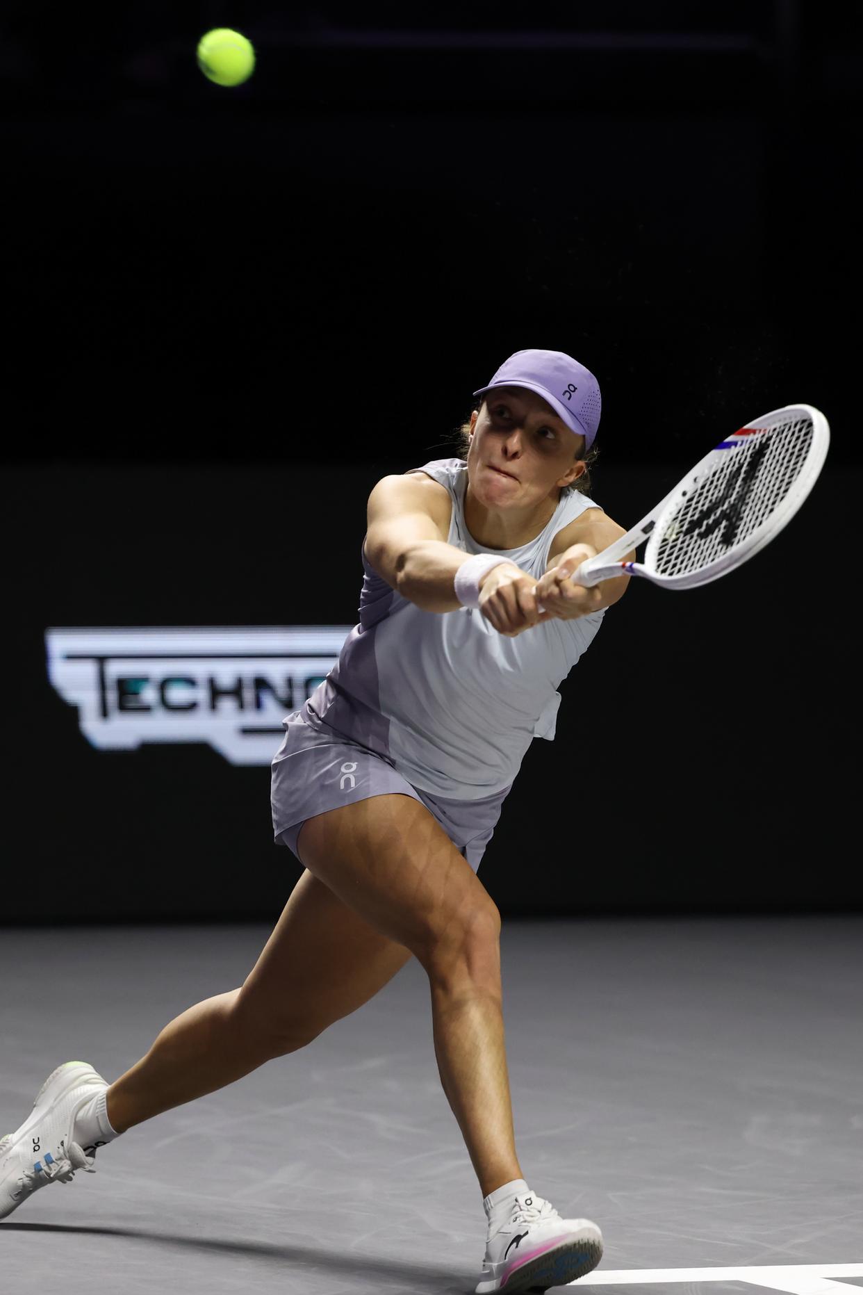 11月5日,斯维亚特克在比赛中回球。 新华社记者 罗晨 摄