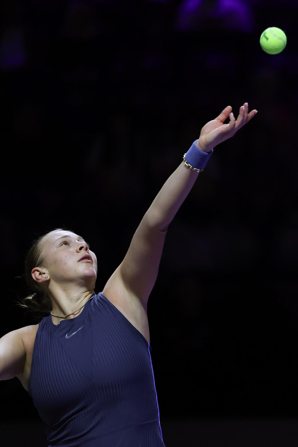 11月5日,阿尼西莫娃在比赛中发球。 新华社记者 罗晨 摄