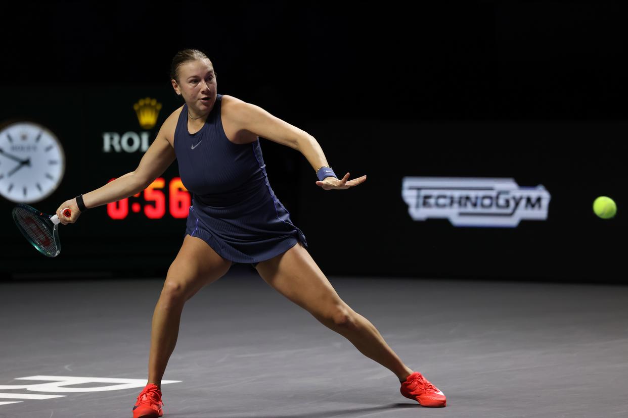 5日,在沙特阿拉伯利雅得进行的WTA年终总决赛小组赛中,美国选手阿尼西莫娃2比1战胜波兰选手斯维亚特克。