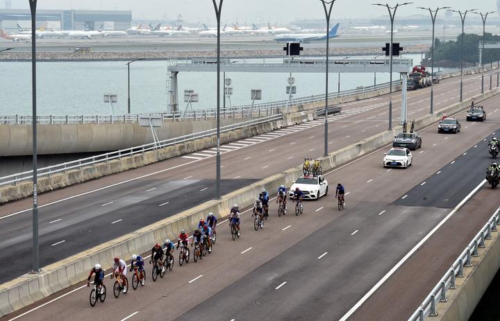 2024年11月24日的测试赛上,参赛选手在港珠澳大桥香港段骑行。新华社发(卢炳辉摄)这条路