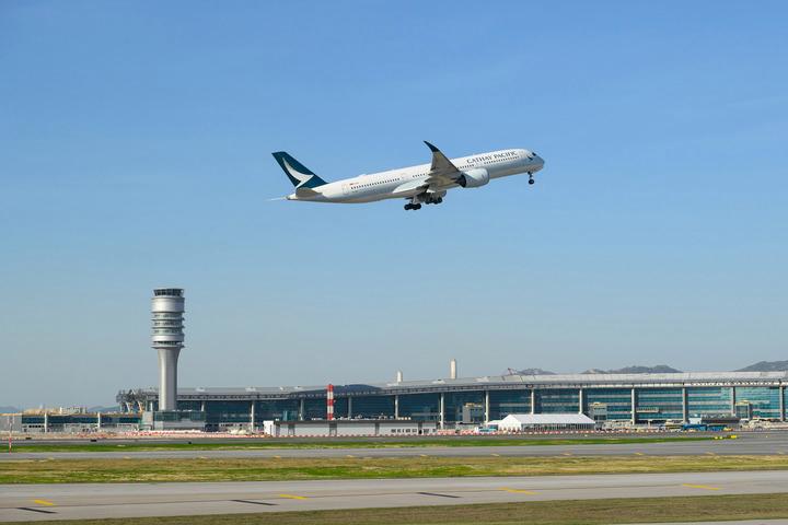 2024年11月28日,香港国际机场三跑道系统正式启用后,一架飞机从中跑道起飞。新华社发返程时