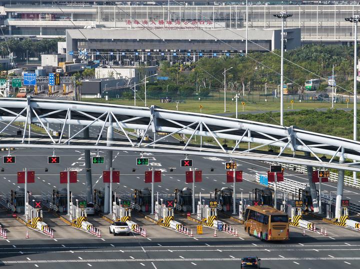 2025年10月19日,车辆经港珠澳大桥驶向珠海公路口岸(无人机照片)。新华社记者 邓华 摄这一次