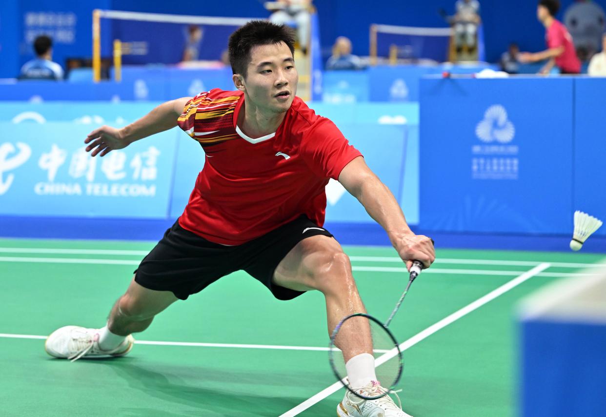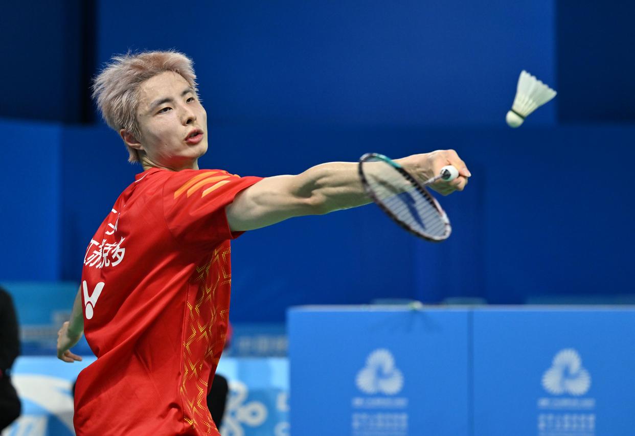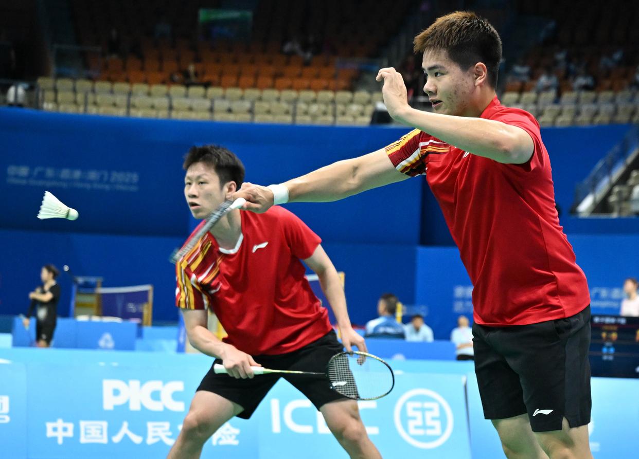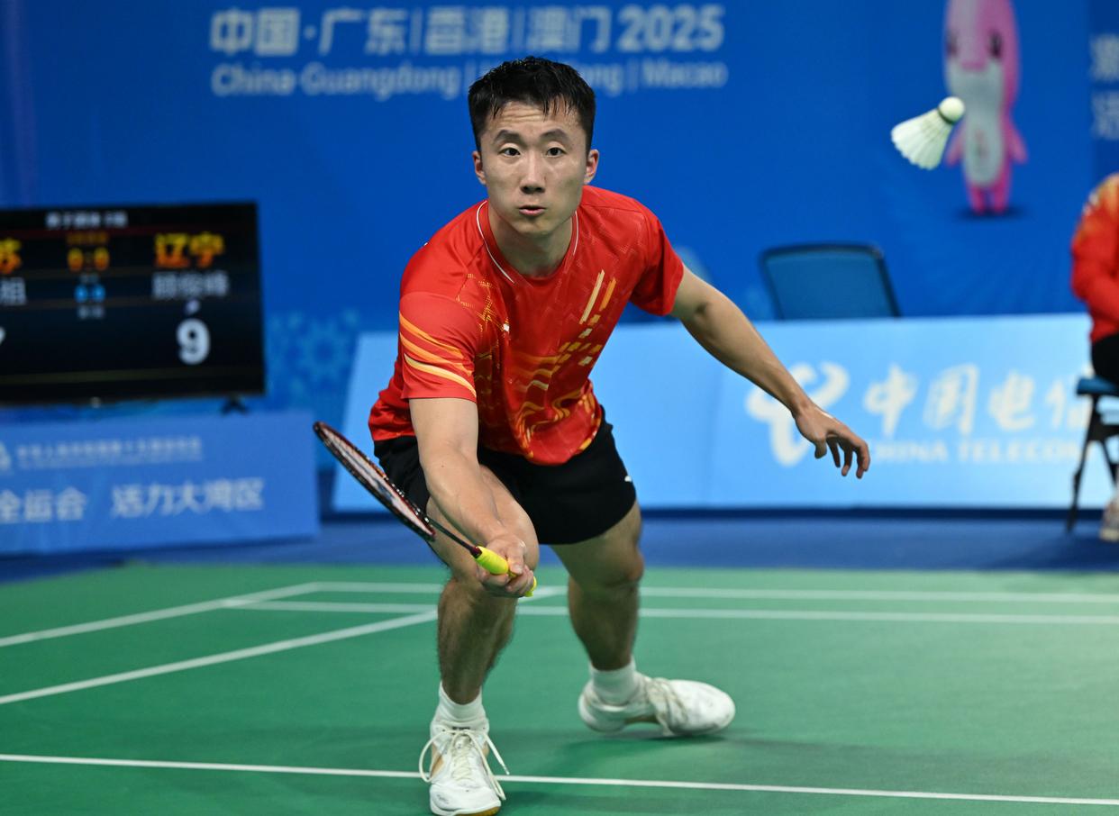 7日,第十五届全国运动会羽毛球男子团体小组赛在深圳举行。