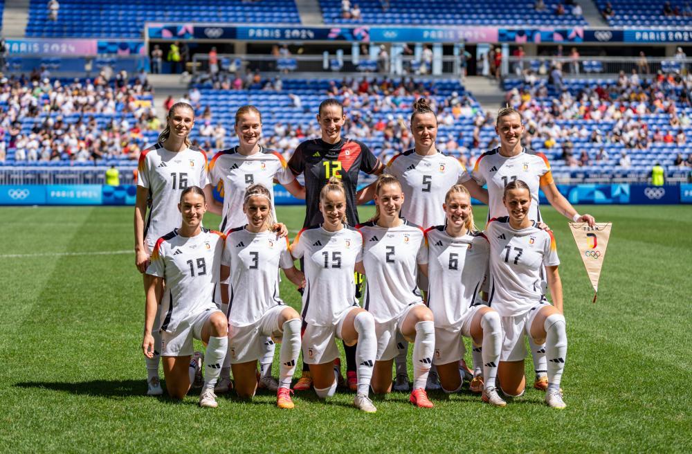 2024年8月9日,在法国里昂进行的巴黎奥运会女子足球铜牌赛中,德国队1比0战胜西班牙队,获得铜牌。新华社记者 孙非 摄