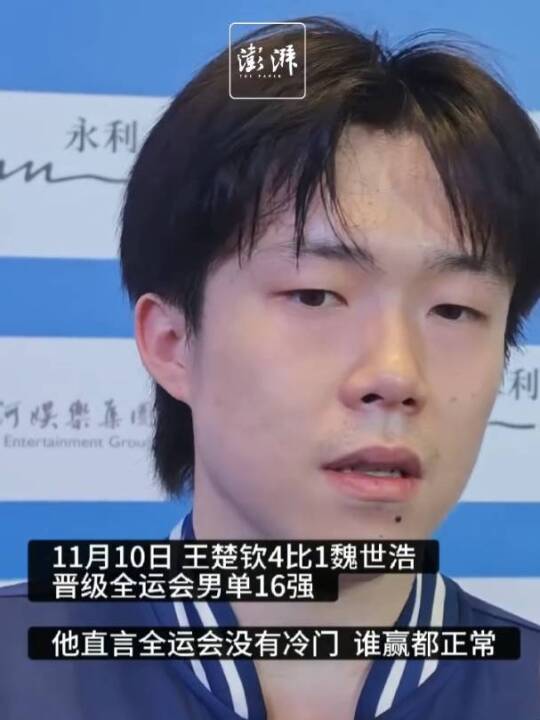北京时间11月10日,第十五届全运会乒乓球比赛男子单打1/16决赛,在樊振东晋级男单16强之后,身为头号种子的王楚钦也迎来了本届全运会首秀。最终,北京队王楚钦4比1战胜黑龙江队魏世皓,晋级下一轮比赛。赛后,他坦言全运会没有冷门,自己想要在比赛中活到最后。