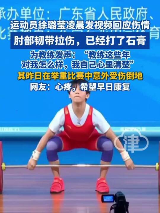 凌晨徐璐莹发视频报平安:肩颈无恙,肘部韧带已打上石膏,“教练对我怎样我清楚,希望大家把目光放在比赛上”。