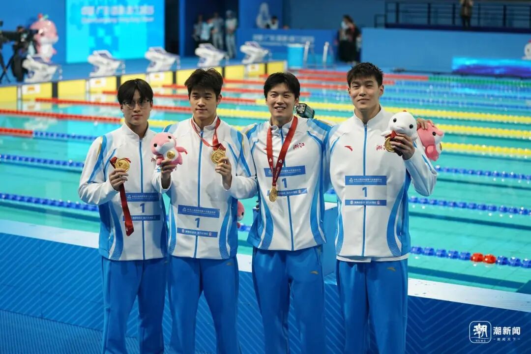 男子4x100米自由泳接力决赛,潘展乐、汪顺领衔的浙江队夺得冠军。