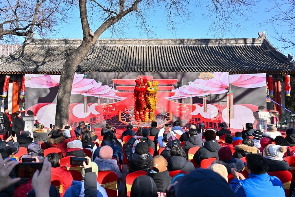 这是北京东城区建国门街道第十八届立春文化节活动中的舞狮节目(2025年2月3日摄)。新华社记者 李鑫 摄
