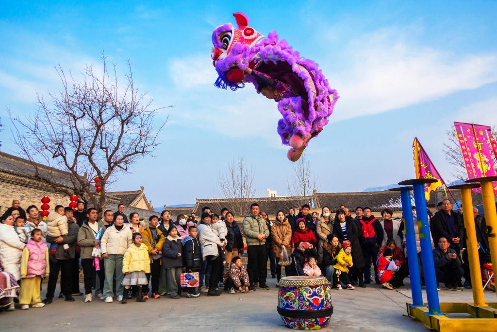 2025年1月30日,山西省运城市盐湖区岚山根景区在进行民俗舞狮表演。新华社发(姜桦摄)