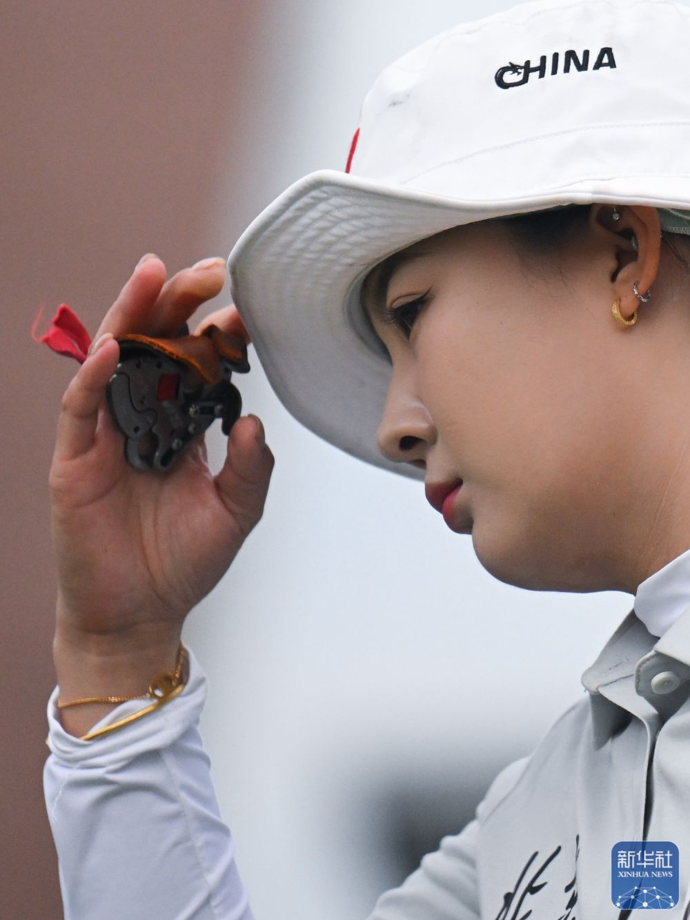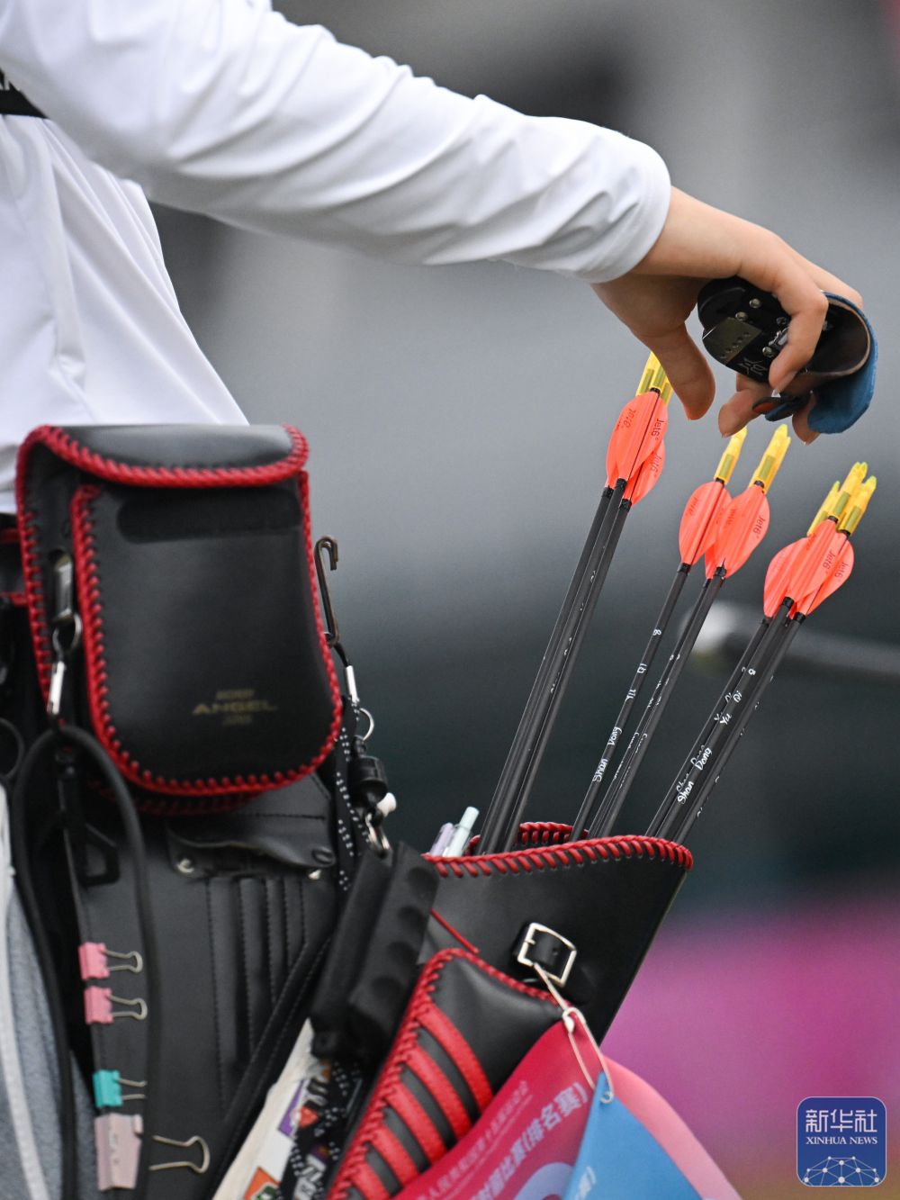 ↑ 参赛选手在比赛中查看靶纸。 新华社记者 郝源 摄