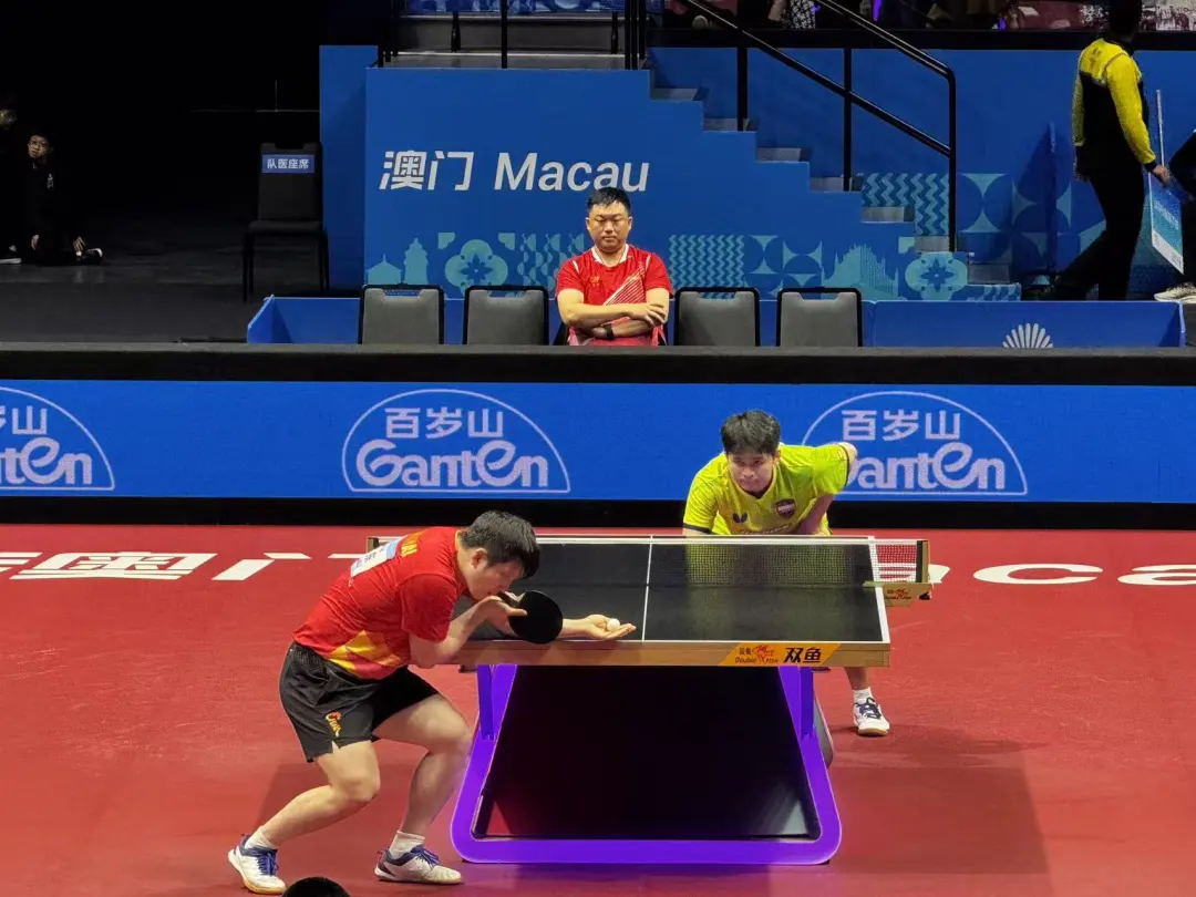 11月7日,樊振东和独自代表海南队参赛的林诗栋在训练场同台对练。不少网友感叹:没有队友并肩,但有东哥支持!