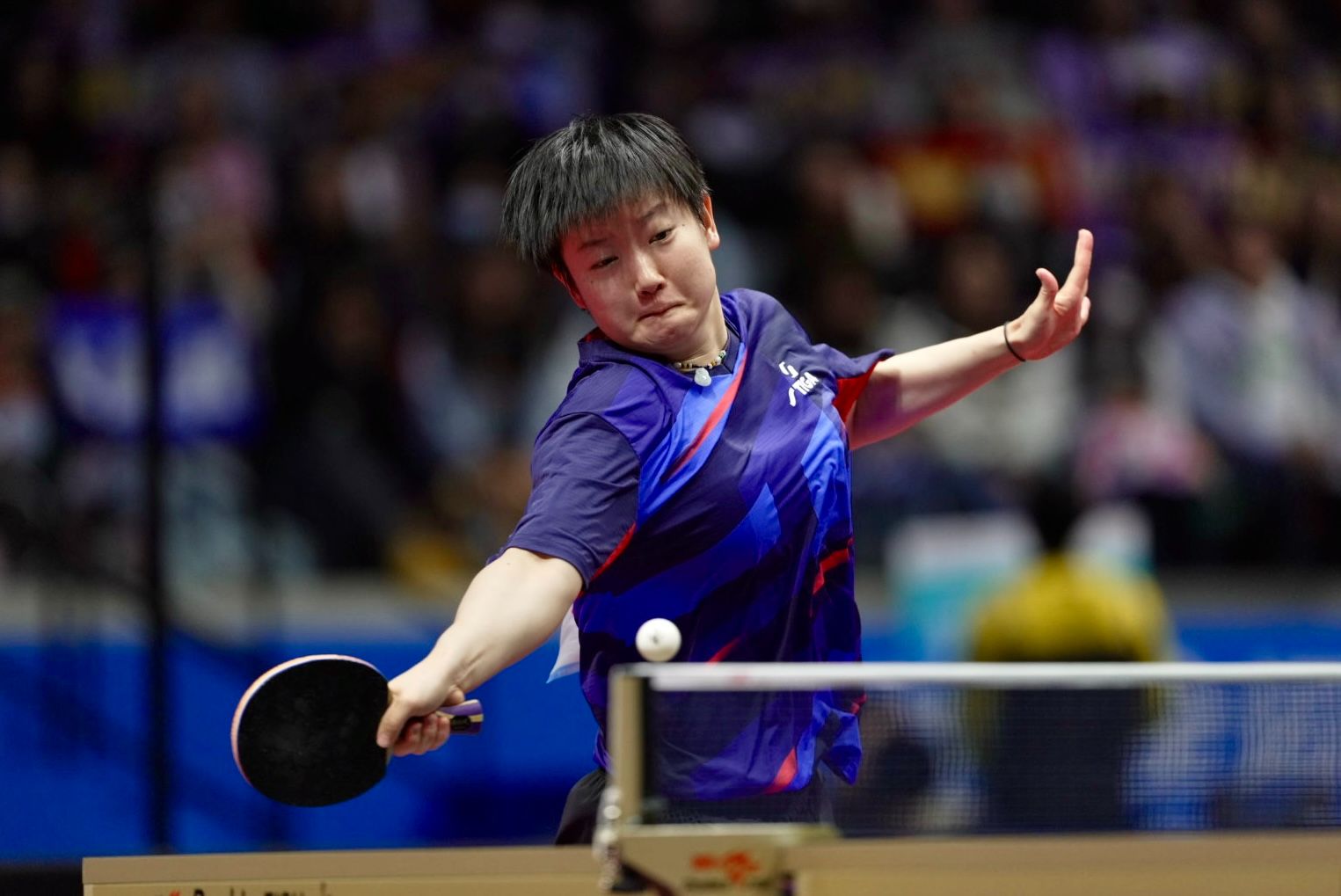 比赛现场,热情的观众竭尽全力为双方运动员加油,孙颖莎、王曼昱以高昂姿态回报观众,俩人的巅峰对决展现了当今世界女子乒乓球运动的最高水平。