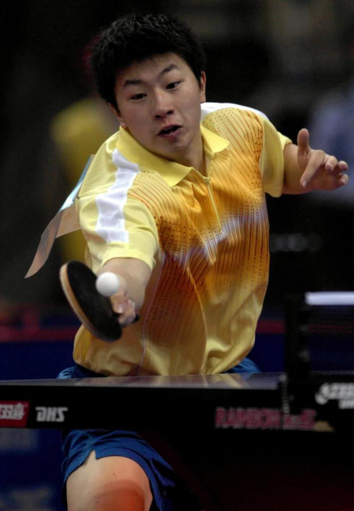 2005年10月18日,北京小将马龙在十运会乒乓球男子单打决赛中,以4比2的比分力克广东名将马琳,夺得铜牌。 新华社发(资料图片)