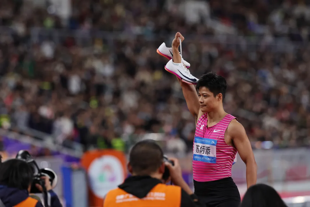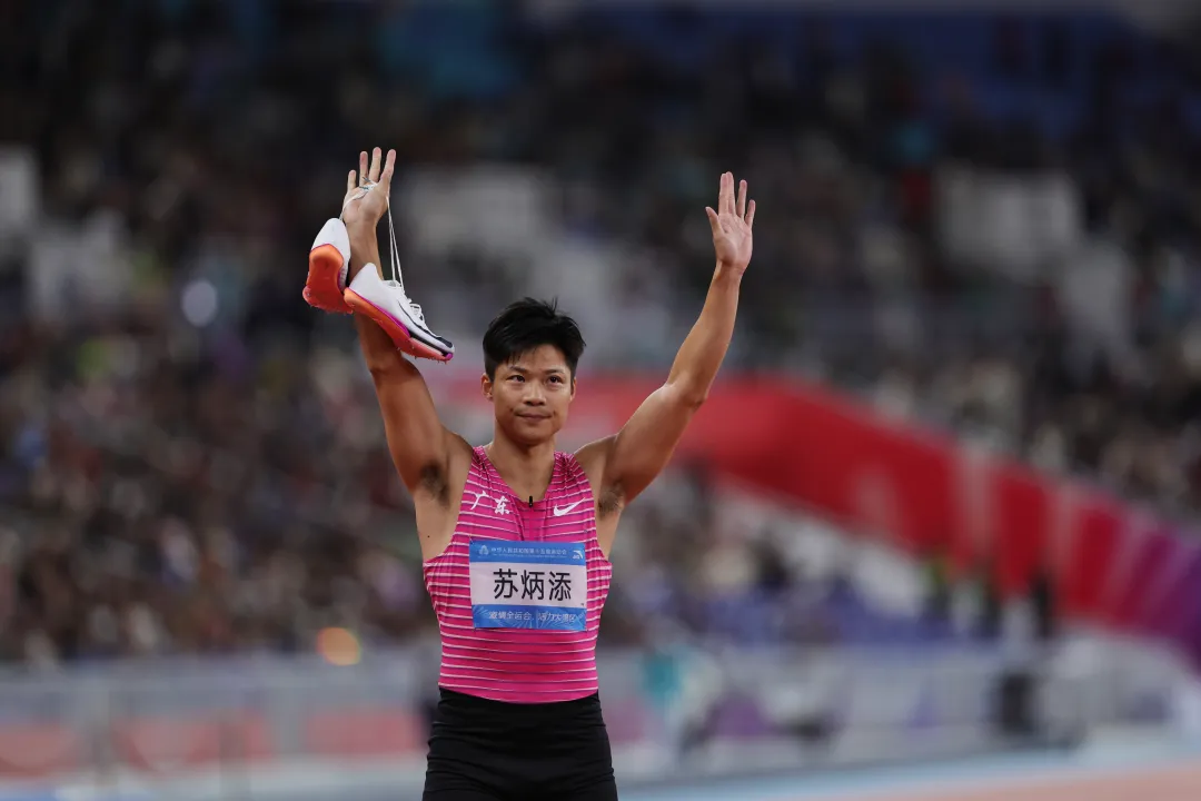 这是36岁的“亚洲飞人”苏炳添第五次参加全运会。此前他曾在不同场合说过,本届全运会将是自己职业生涯的“最后一舞”。比赛结束后,现场响起粤语金曲《讲不出再见》,数万名观众用持久而热烈的欢呼声向这位“亚洲飞人”、中国短跑名将致敬。