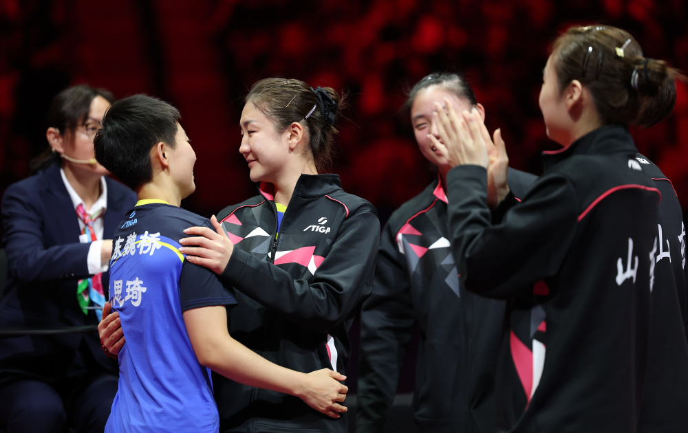 新华社澳门11月20日电(记者岳冉冉、李春宇、郭雨祺)当刘诗雯把混双金牌贴在胸前,当陈梦获得女团冠军后拥抱队友,十五运会这两枚乒乓球金牌的分量已不同往昔。这是一份乒坛殊荣的加冕,更是两位名将对“与胜负和解,与热爱相拥”的温柔诠释。