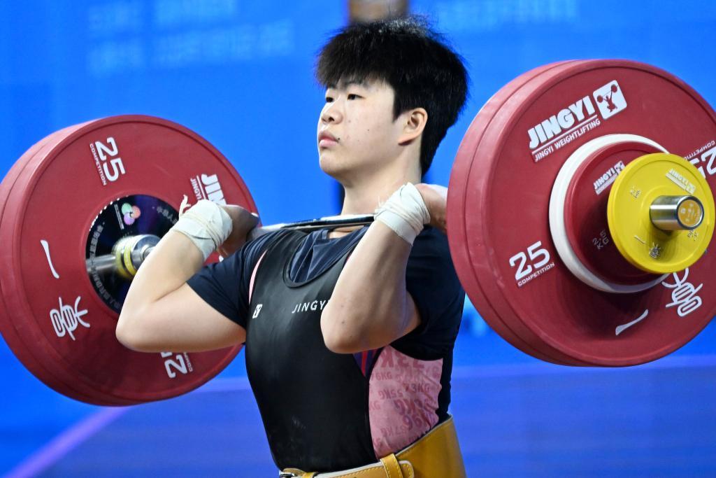 11月13日,第十五届全国运动会举重女子76公斤级决赛中,福建队选手廖桂芳凭借158公斤的挺举成绩超世界纪录,并创造新的全国纪录。新华社记者 杨晨光 摄