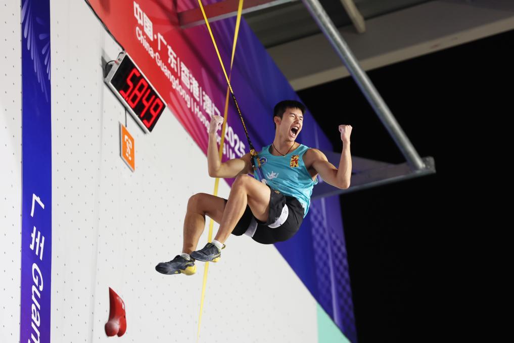 11月14日,贵州队选手龙见国在获胜后庆祝。新华社记者 杨世尧 摄