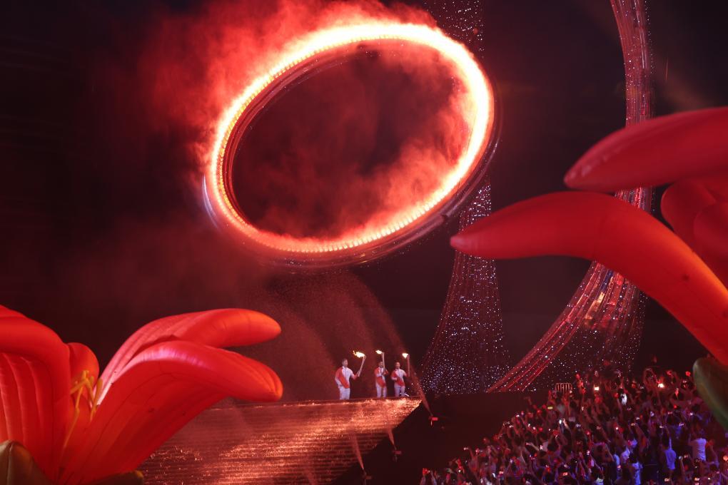 11月9日,第十五届全国运动会开幕式在广东奥林匹克体育中心举行,主火炬被点燃。新华社记者 雒圆 摄
