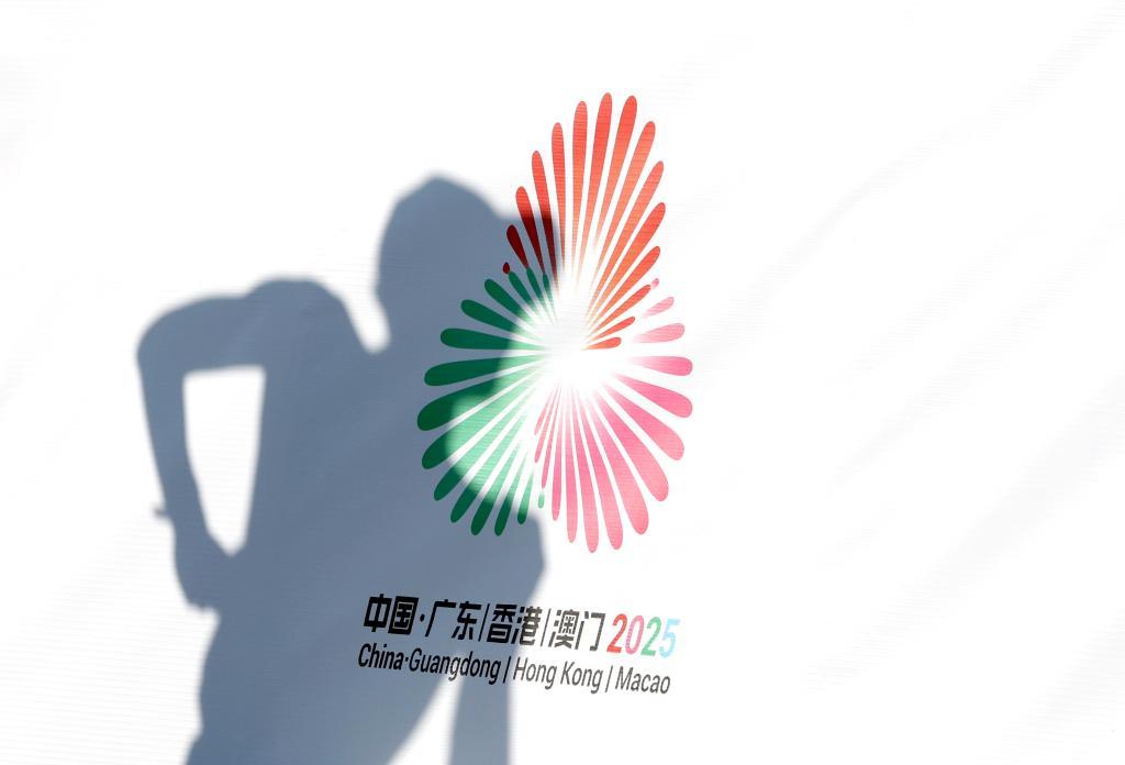 11月12日,一名参赛选手在比赛中经过一处第十五届全国运动会会徽图案。当日,第十五届全国运动会田径项目男子20公里竞走决赛在广东珠海举行。新华社记者 毛思倩 摄