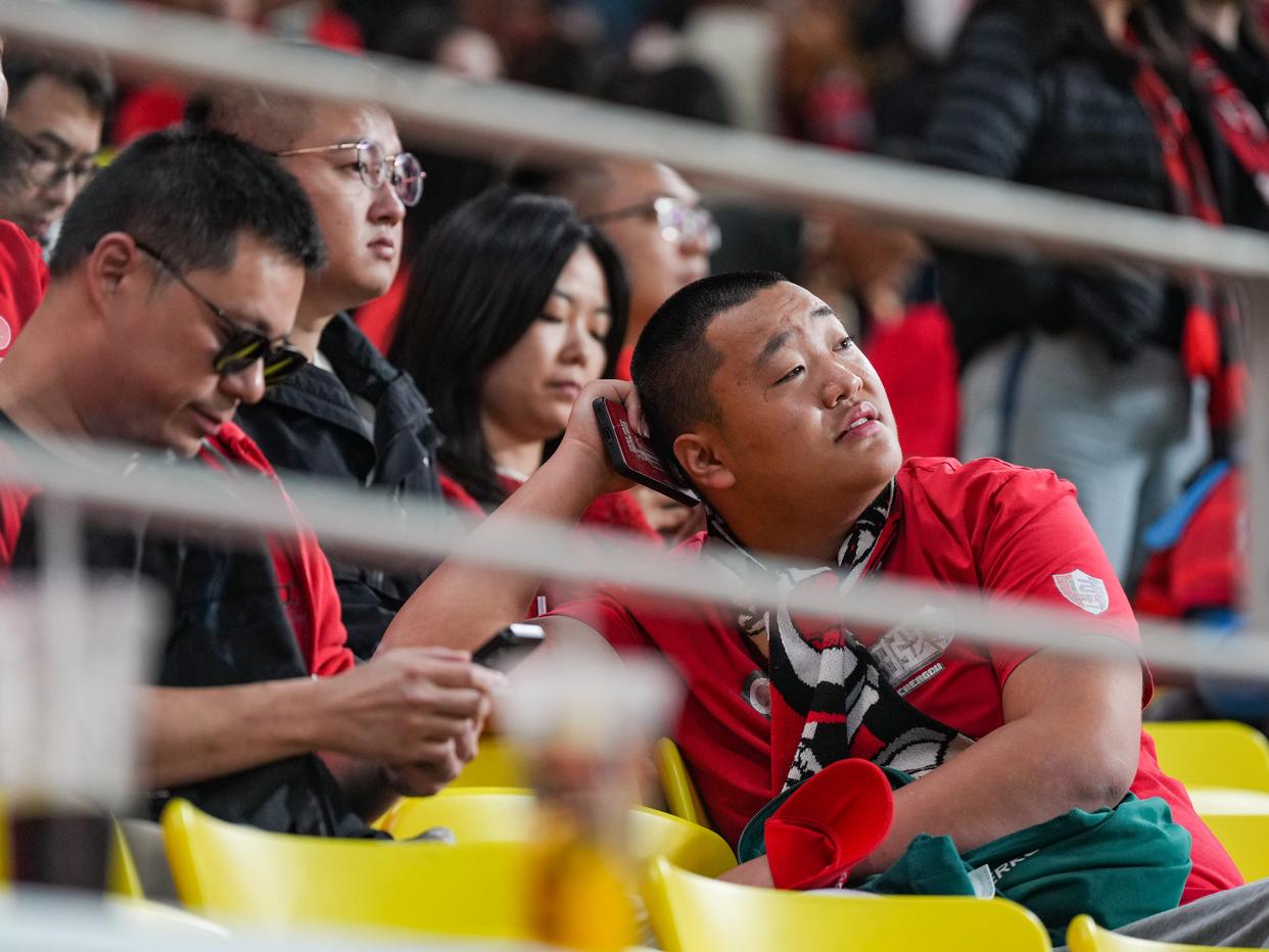 10月31日,成都蓉城队球迷在主队不敌河南俱乐部酒祖杜康队后表情失落。新华社记者 王曦 摄冠军只有一个