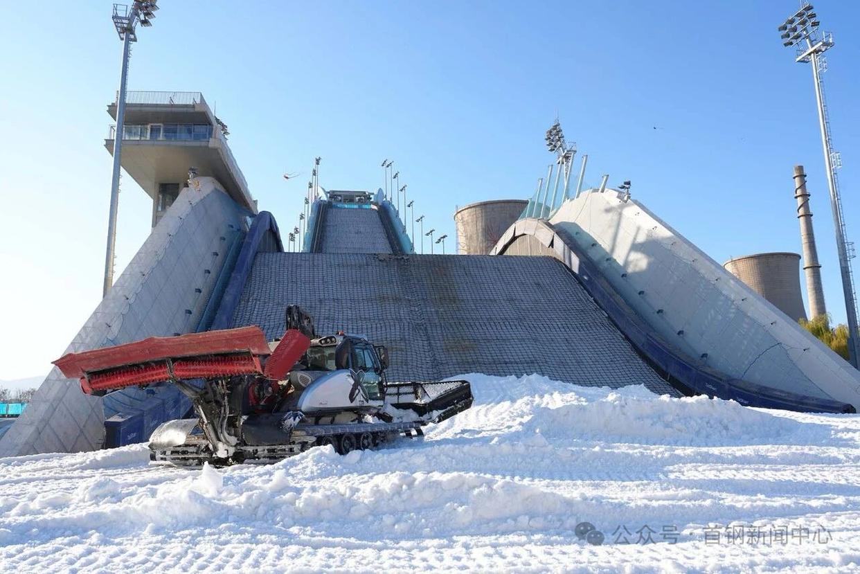 图为正在造雪的北京首钢滑雪大跳台。图片来自首钢新闻中心12月6日-7日