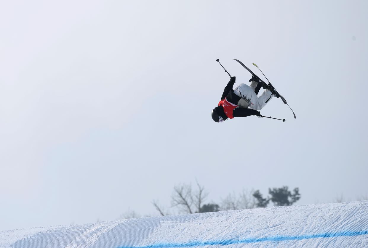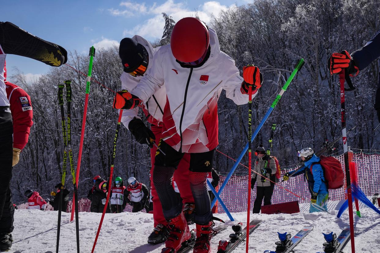 2月23日,亚军中国选手齐广璞(左)与队友、冠军李天马在自由式滑雪世界杯(北大湖站)空中技巧男子决赛后。新华社记者 颜麟蕴 摄在单板滑雪平行大回转