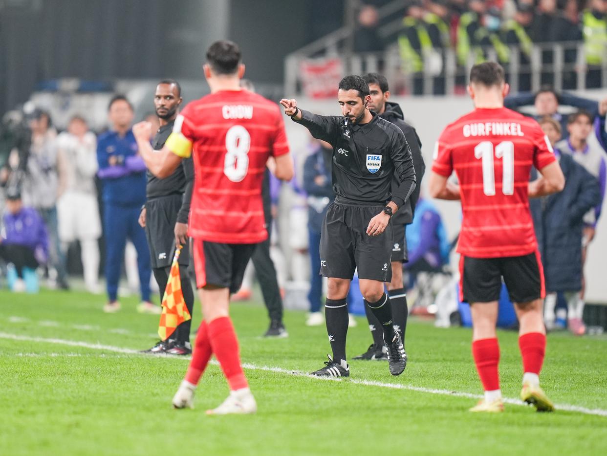 11月25日,主裁判在回看视频助理裁判后判给成都蓉城队点球。新华社记者 王曦 摄