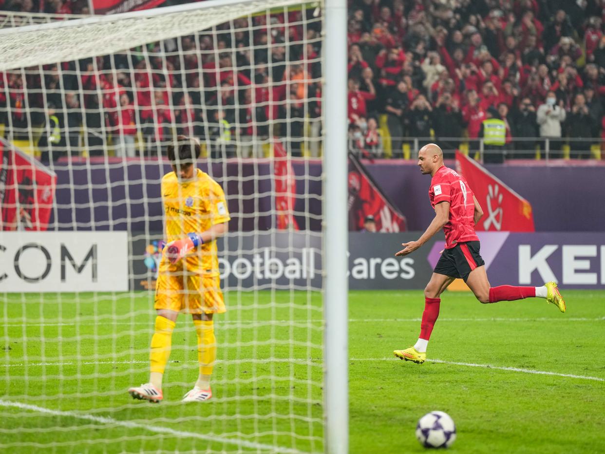 11月25日,成都蓉城队球员费利佩进球后庆祝。新华社记者 王曦 摄