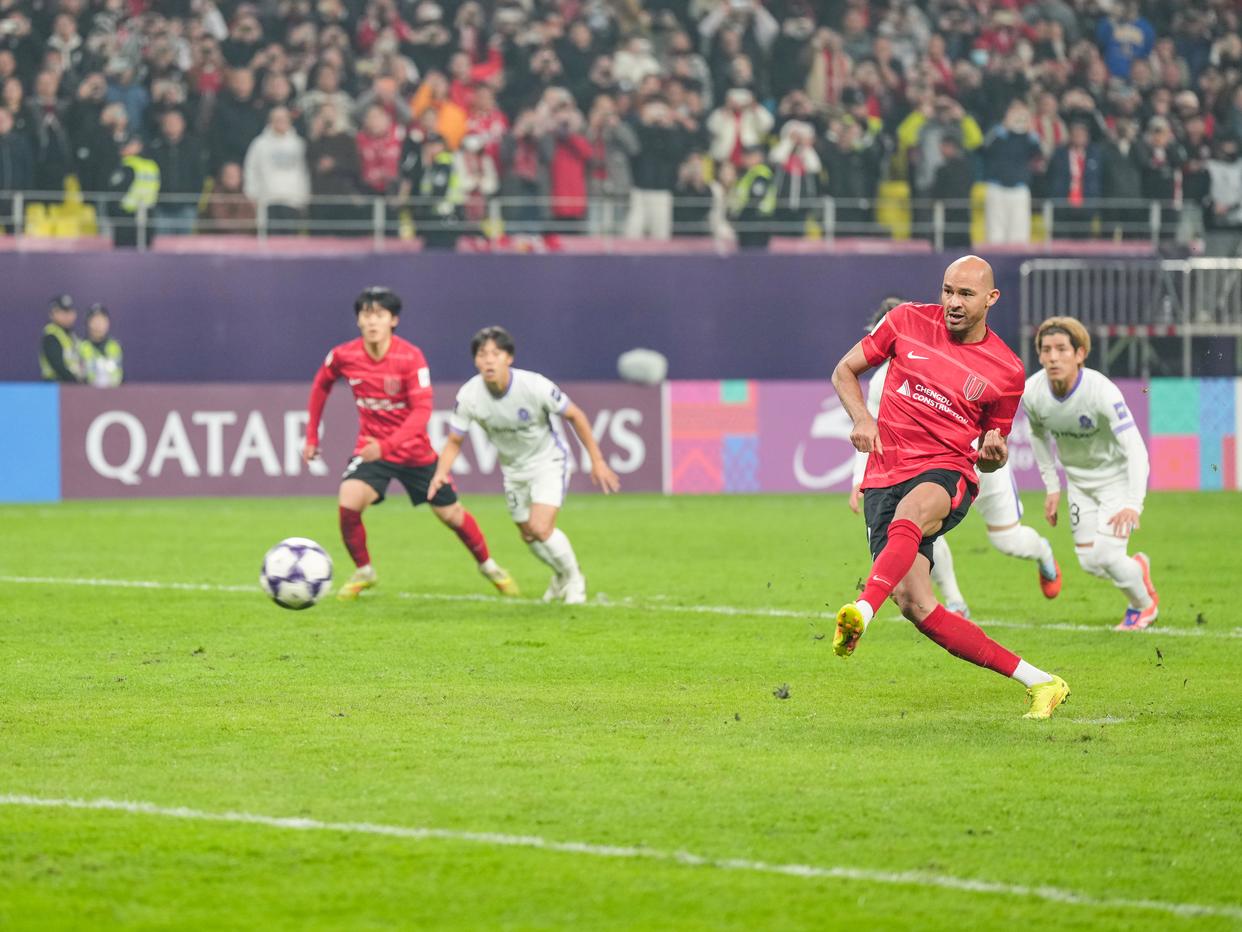 11月25日,成都蓉城队球员费利佩(前)主罚点球得分。新华社记者 王曦 摄