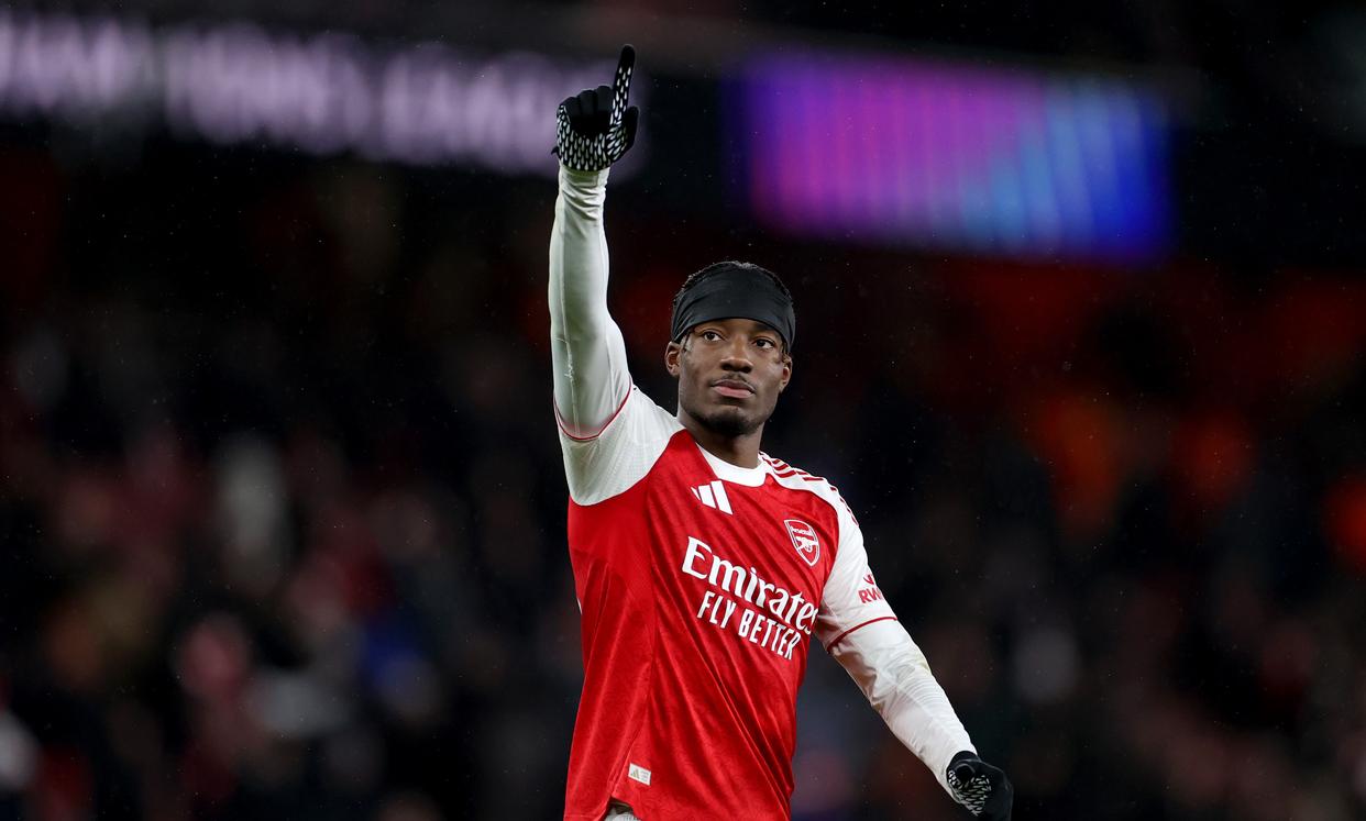 11月26日,阿森纳队球员马杜埃凯赛后庆祝胜利。新华社记者李颖摄