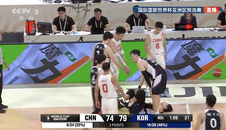 上半场,中国队仅有程帅澎投中了1个三分球,外线9中1,而韩国队则15中9,李贤重一人在外线8中6,砍下20分6个篮板1次抢断,韩国队也以47比34领先13分之多。