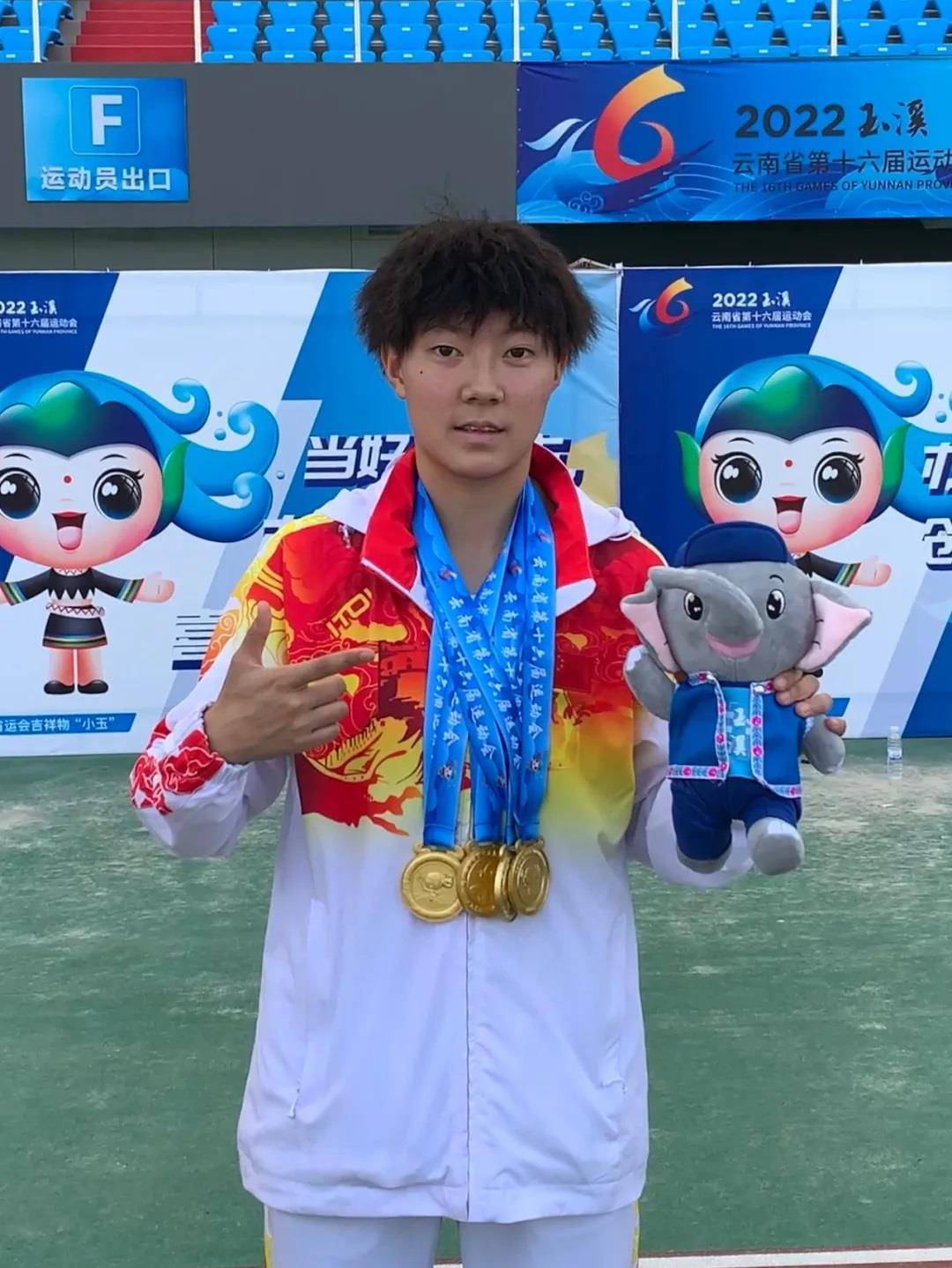 2022年朱俊颖在云南省第16届运动会斩获四金。(受访者供图)
