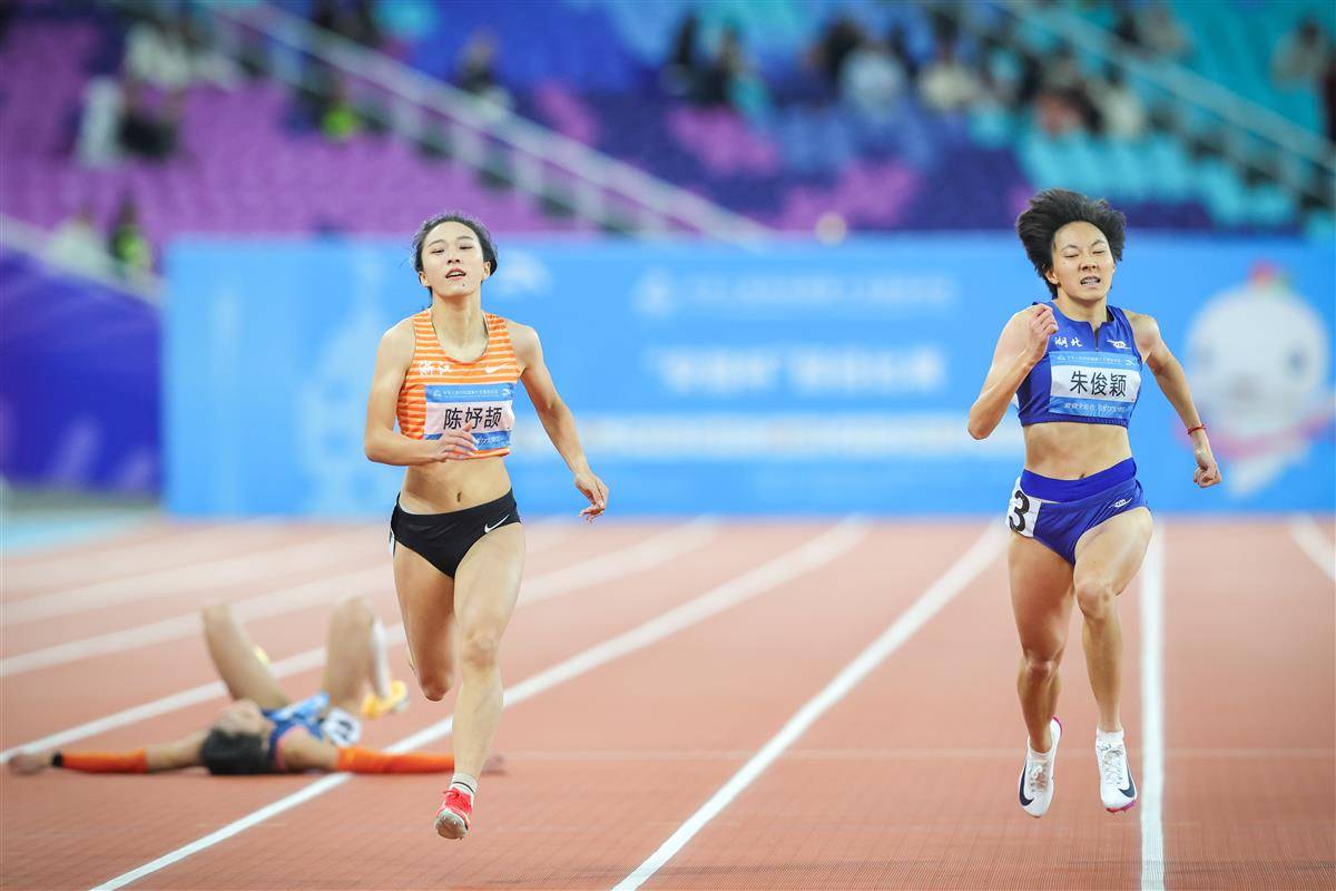朱俊颖(右一)在十五运会女子200米决赛中。(湖北日报全媒记者 时龚 摄)