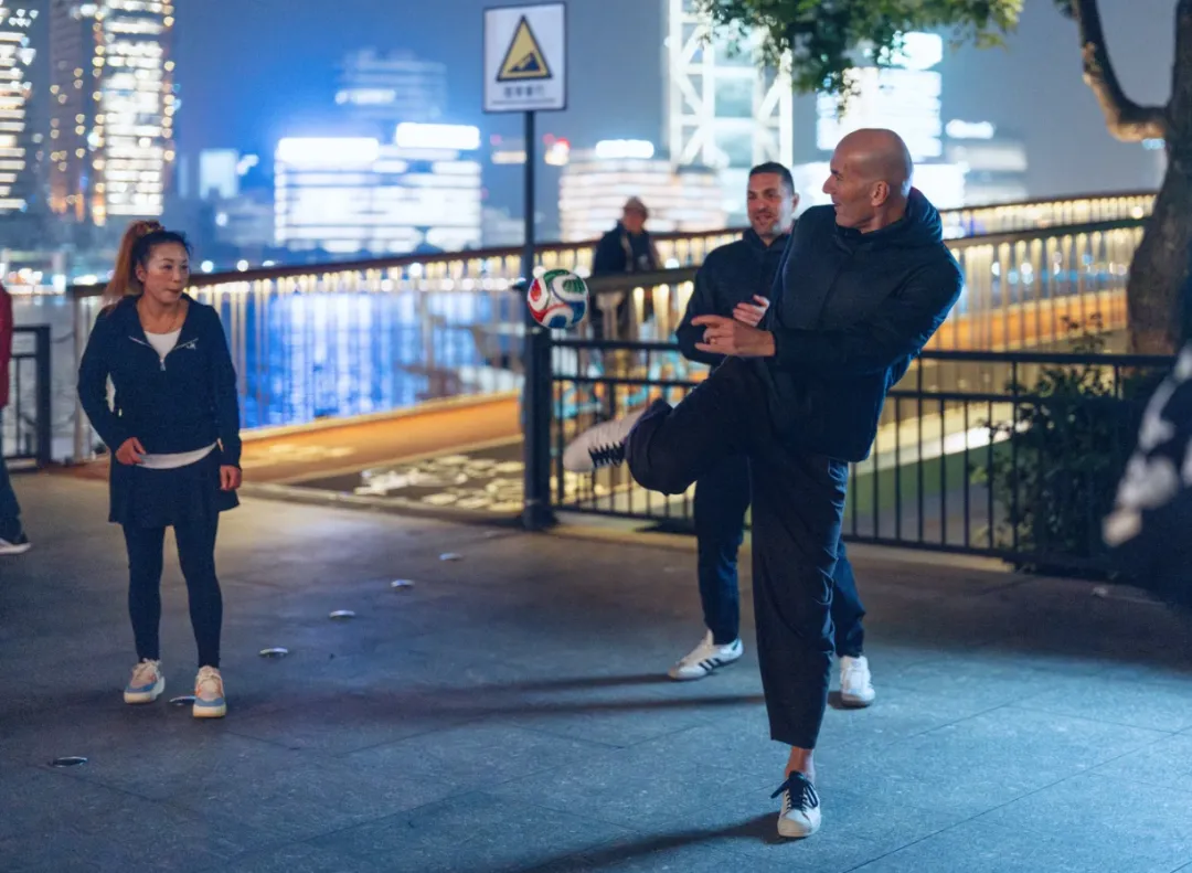 此前齐达内在上海外滩路遇一群踢毽子的市民。在观摩一段时间后尝试加入,与他们一同较量了一下“脚上功夫”。