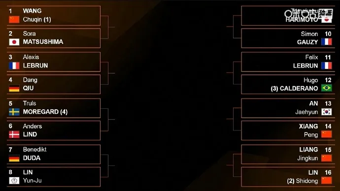 【1/4区】王楚钦VS松岛辉空、艾利克斯·勒布伦VS邱党【2/4区】特鲁斯·莫雷加德VS安德斯·林德、贝内迪克特·杜达VS林昀儒【3/4区】张本智和VS西蒙·高茨、费利克斯·勒布伦VS雨果·卡尔德拉诺【4/4区】安宰贤VS向鹏、梁靖崑VS林诗栋