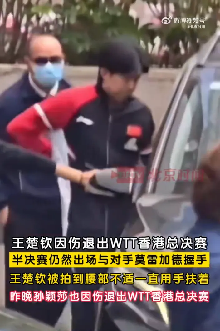今日上训时,王楚钦被拍到腰部不适一直用手扶着,昨晚孙颖莎也因伤退出WTT香港总决赛。