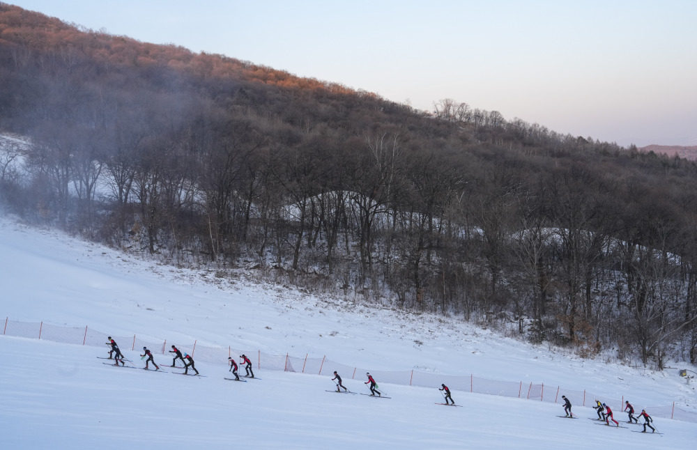 12月15日,专业组男子选手在比赛中出发。新华社记者 颜麟蕴 摄